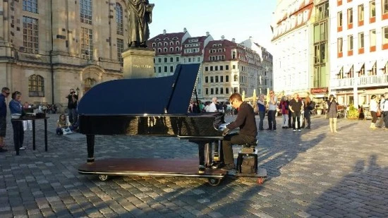 위 사진 속의 버스커는 프라우엔 키르헤 앞에서 그라운드 피아노를 놓고 아름다운 소리를 뿜어 내고 있는데, 주변 정황을 보면 전문 음악인이 아니라 생계형 음악인이라고 생각된다. 그렇지만 어쨌거나 멋진 광경을 연출하고 있는 것만은 틀림없다.