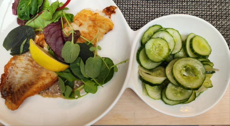 육류를 별로 즐기지 않는 나는 농어 필렛을 택했는데, 맛도 맛이지만 피클(?)과 한께 서비스되는 접시가 귀엽고 앙증맞기 그지 없다.