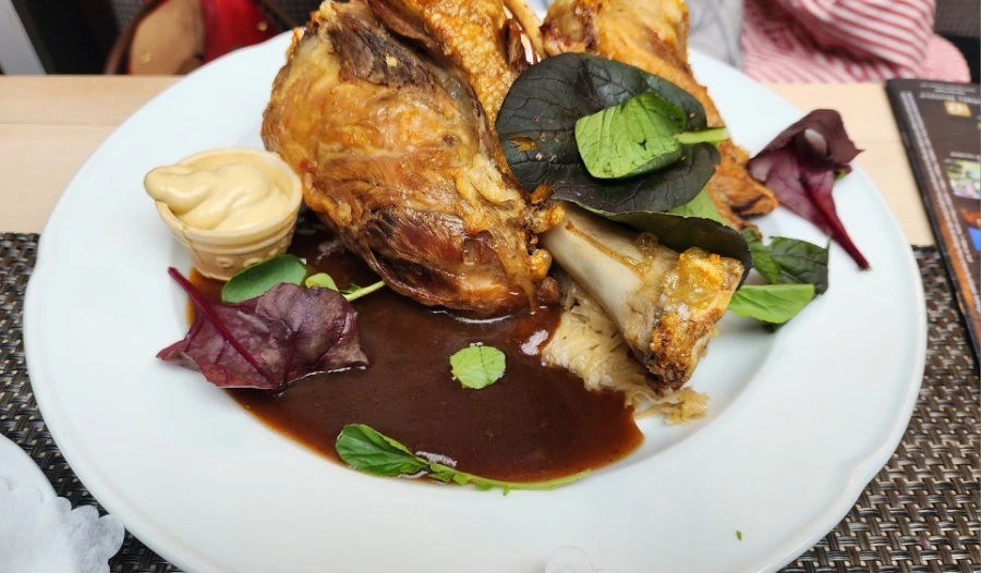 레스토랑이란 곳에 들어오면 마실 음료를 쉽게 고르고, 음식을 고르는데 시간이 많이 걸리는 것이 보통이다. 그런데 이곳 브라우하우스 줌 뢰벤에서는 그렇지 않았다. 집사람은 두말할 것도 없이 우리식으로 치면 족발에 유사한 학세(Haxe)를 골랐는데, 양이 혼자 먹기엔 부담스러울만큼 많다.