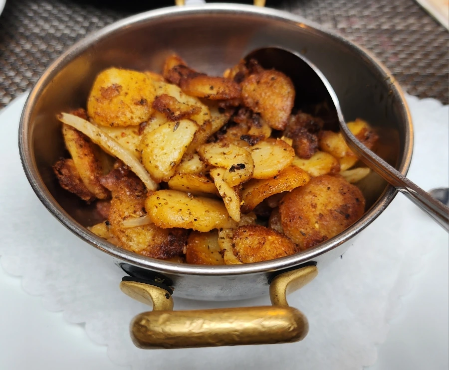 여기에 내가 제일 좋아하는 "브라트 카르토펠(Brat Kartoffel)"을 추가했다. 아, 사진을 보면 알겠지만 브라트 카르토펠이란 감자를 구운 것인데, 우리나라에서는 감자요리를 이렇게 내는 곳을 찾아 보기 쉽지 않다.