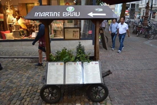 자 이제 무엇을 주문해 볼까? 일단 메뉴판을 보자. 아, Martins' Bräu라는 상호 밑에 무엇이라고 작게 쓰여 있는 글씨는 신경 쓸 것 없다. 자신들이 프라이부르크에서 음식점으로는 최초로 맥주를 만들었다는 이야기...