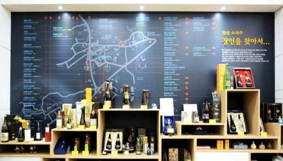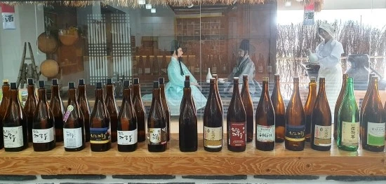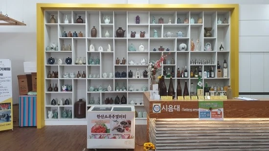 그리고 그분들이 만든 제품들을 전시하고 있는데, 방문객들에게 매주 다른 종류의 소곡주를 맛볼 수 있게 해주고 있다. 여기가 시음대인데, 비록 제품마다 제조과정이나 맛을 조금씩 달리 하기는 하지만 소곡주 특유의 '달달하며 순한 느낌'은 거의 공통적인 듯하다.