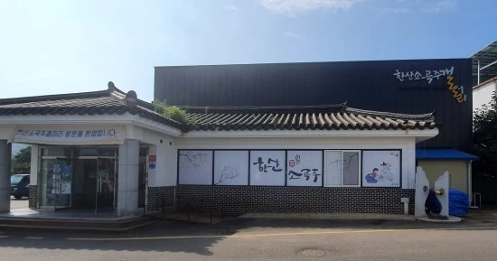 "한산 소곡주 갤러리"는 단층의 건물로 그리 크지 않다. 이것이 전면부 사진이고,