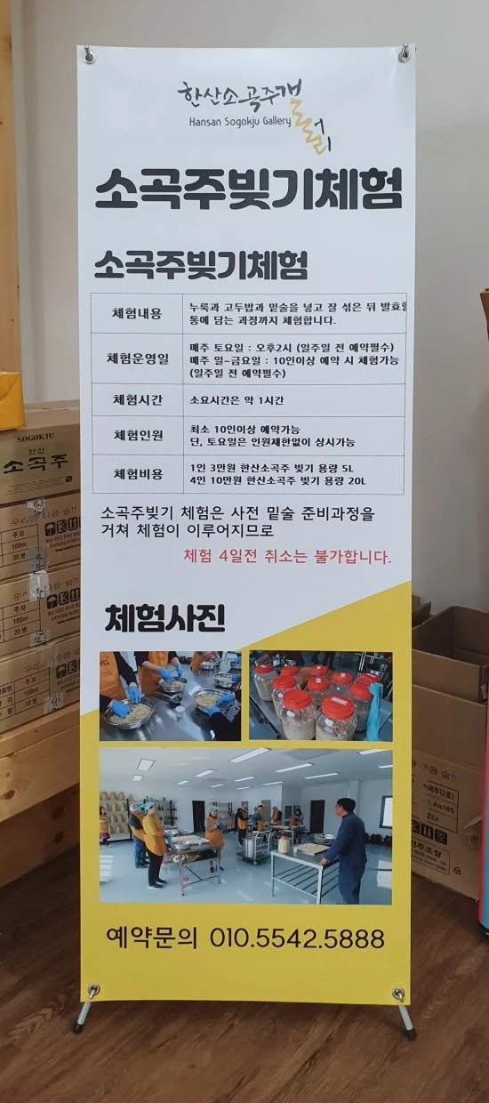 앞에서 이야기했던 것처럼 이곳에서 소곡주 빚기 체험도 할 수 있는데, 체험에 관한 상세한 내용은 아래 안내판을 참조하기를...