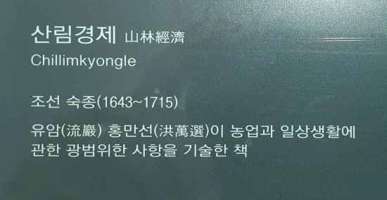 "한산 소곡주 갤러리"가 박물관의 성격을 갖는다는 생각을 갖게 만든 전시물인데, 소곡주에 관한 기록이 실려 있는 여러 책들을 소개하고 있다. 그런데 그들 중에서 내가 들어본 것은 사실 홍만선(洪萬選, 1643~1715)의 산림경제, 이 책 한 권뿐이다.