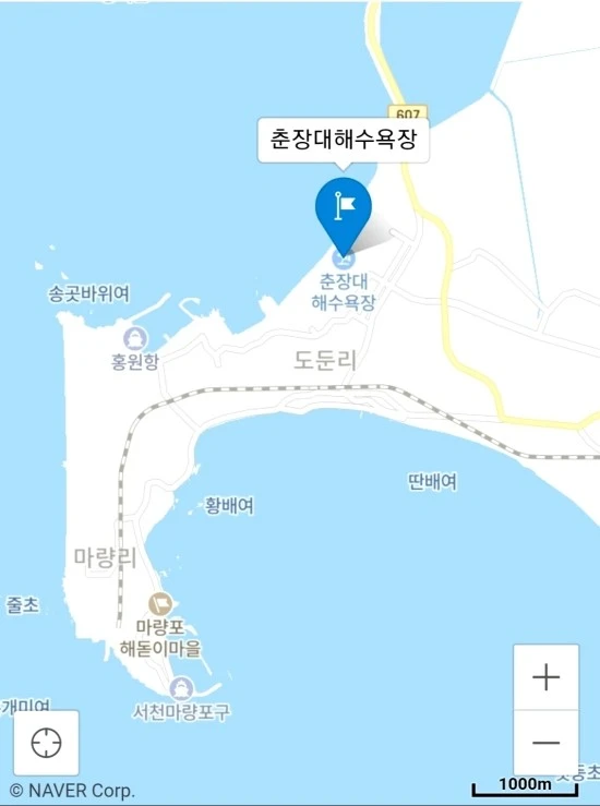 일단 춘장대 해수수욕장의 위치는 아래 지도를 참고하면 되는데, 춘장대 해수욕장은 한마디로 서천군의 서북쪽 끝에 있다. 그래서 이곳을 벗어나 북쪽으로 방향을 돌리면 바로 보령시가 나오게 된다.