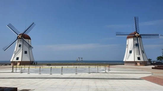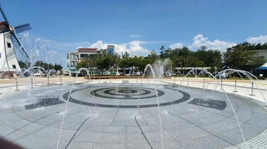 풍차 앞의 원형분수에서는 주기적으로 물이 뿜어져 나온다. 조금 전까지만 해도 틀림없이 높고 세찬 물줄기가 시원스레 뿜어져 나왔는데, 내가 사진기를 갖다 대는 순간... 그만 갑자기 잔잔해졌다.