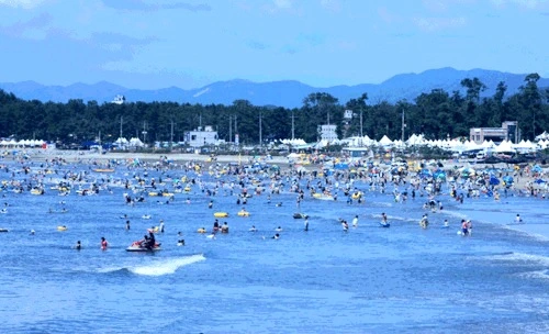 코로나 사태가 없던 시절의 춘장대 해수욕장은 발 디딜 틈이 없을 만큼 사람들로 가득했다(아래 사진 참조). 이렇게나 사람들이 많이 몰려들었던 것은 춘장대 해수욕장이 (사진에는 보이지 않는) 커다란 매력을 갖고 있기 때문인데, 그 매력은 바다 안으로 들어가 보아야만 알 수 있다.