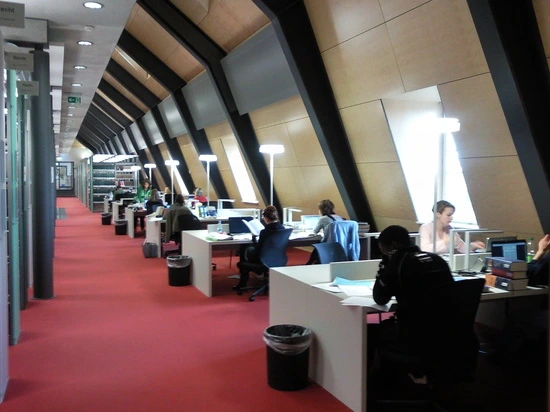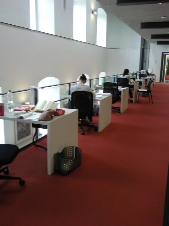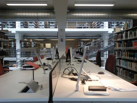 만하임(Mannheim) 대학의 중앙도서관의 열람실의 기본 형태는 아래 사진과 같은데, 책상과 책상 사이의 공간이 널찍널찍한 것이 특징적이다.