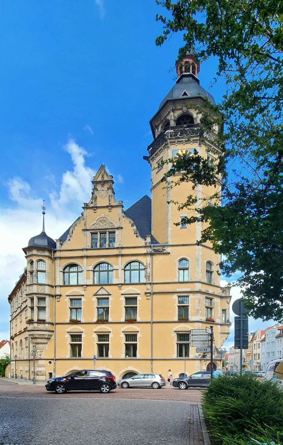 서쪽면에서 바라본 시청사인데, 여기서 잠깐 시청사의 역사에 관하여 이야기를 해보기로 하겠다. 문헌상으로 쾨텐이 처음으로 언급된 것은 12세기말인데, 쾨텐의 첫 번째 시청사는 아마도 13세기에 지어졌을 것으로 추정되고 있으며, 두 번째 시청사는 1437년에 지어졌다. 1437년에 지어진 구시청사는 100여년 동안 손을 보지 않아서 17세기 초에는 붕괴의 위험을 안게 되는데, 그래서 30년 전쟁이 한창이던 1638년과 1639년에 다시 신축을 하게 된다. 이것이 3번째 시청사인데, 문제는 세번째 청사는 처음부터 너무 작았다는 것이다. 하여 1876년에 옆 건물을 사들여 일부 확장을 했는데, 그것으로도 부족해서 1894년에 옆 건물을 하나 더 사들여 1896년부터 1900년까지 4년에 걸쳐 시청사를 완전히 새로 짓게 된다. 새로운 시청사는 독일 르네상스 양식으로 축조되었는데, 그것이 우리가 오늘날 보는 지금의 시청사이다.