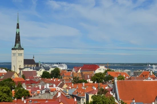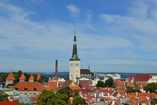 그렇다면 막상 올레비스테 교회의 모습, 특히 주변의 건물과 어우러진 첨탑은 어디서 볼 수 있을까? 결론부터 말하면 탈린의 고지대에 있는 돔 성당옆에 탈린을 조망할 수 있는 또 한 곳의 전망대가 있는데, 그곳에서 바라보면 올레비스데 교회의 모습을 잘 볼 수 있다. 이렇게... 어느 것이 올레비스데 교회인지는 설명이 필요 없을 것이다.