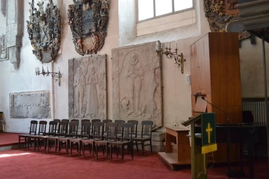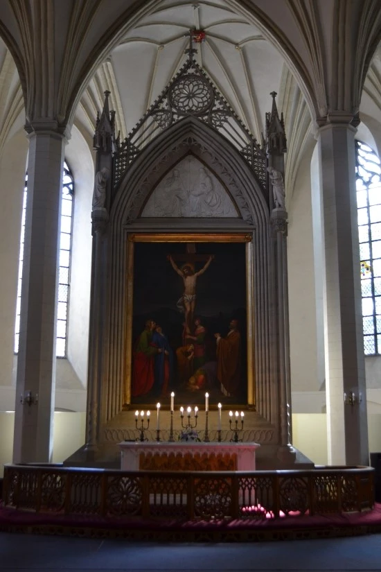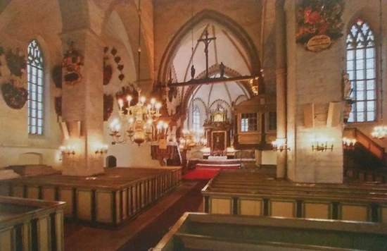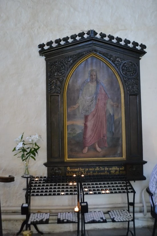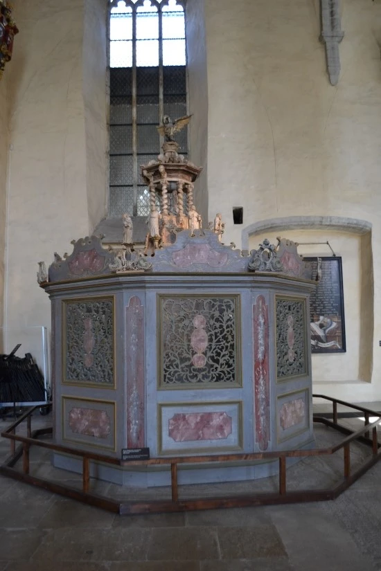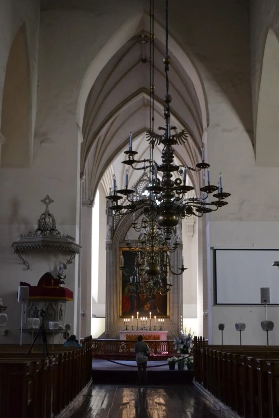 교회 중앙제단의 오른쪽에 스웨덴 성 미셀 교회의 세례반이 전시되어 있는데, 아커만(Christian Ackermann)의 1680년대 작품이다. Ackermann은 나무를 이용한 조각가로서 당시에도 이미 조각가로서의 위명을 떨쳤던 사람이라고 하는데, (뒤에서 이야기하는) 고지대에 있는 돔 성당의 제단도 그의 작품이다.