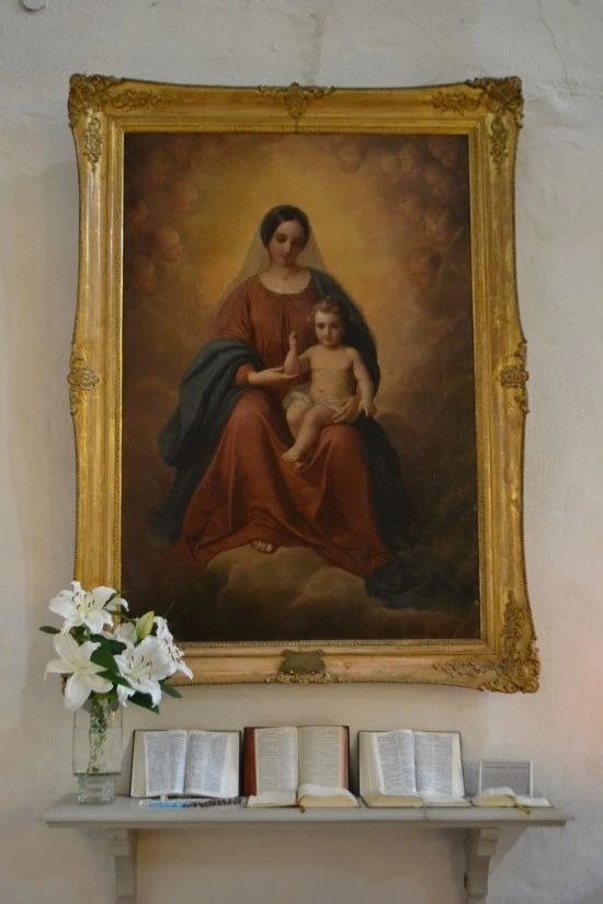 교회 뒤편에 있는 스테인드글라스 바로 밑에 있는 그림이 마음에 들어 사진에 담아 보았는데, 막상 그림은 잘 안 보인다.