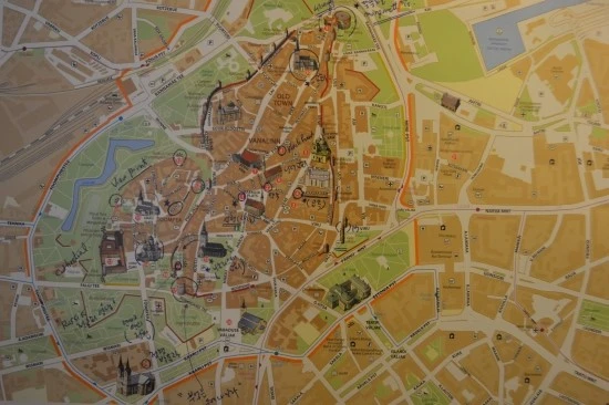 자, 이제 지도를 보면서 본격적으로 탈린을 이야기해 보자. 아래 지도 중앙에서 왼쪽으로 초록색으로 연결되어 있는 부분이 보일 것이다. 그리고 그 안쪽으로 짙은 갈색으로 칠해져 있는 부분이 보일 텐데, 그 부분이 바로 탈린의 구시가지이다. 그런데 구시가지를 자세히 들여다보면, 구시가지가 다시 왼쪽의 자그마한 덩어리와 오른쪽의 좀 커다란 덩어리로 나뉘어 있다는 느낌을 받을 것이다. 왼쪽이 고지대, 오른쪽이 저지대인데, 보다시피 오른쪽의 저지대가 훨씬 넓고 볼 만한 것들도 저지대 쪽에 몰려 있다. 그러하니 탈린의 구시가지 관광에 나서는 경우 저지대와 고지대를 둘러보는 시간은 8:2 정도로 배분하는 것이 적정비율이 될 것이다.