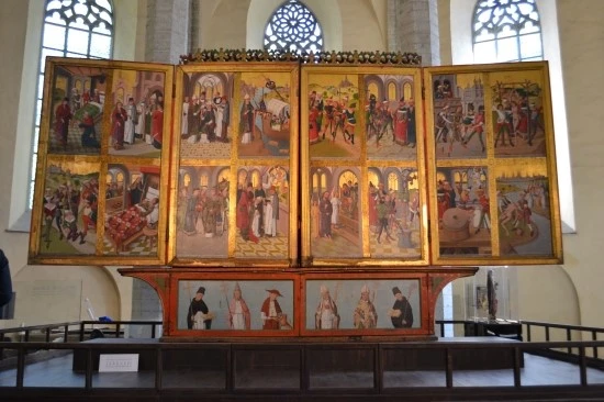 앞에서 이야기했듯이 니굴리스테 교회는 박물관적 성향이 강하여 교회 곳곳에서 예술적 가치가 높은 작품들을 접할 수 있는데, 그 가운데 가장 주목을 끄는 것은 역시 노트케(Bernt Notke)의 "죽음의 춤(Dance Macabre)"이다. "죽음의 춤"은 16세기 후반기의 작품으로 알려져 있는데, 화면 구성이 무언가 현대적인 느낌을 준다. 사진이 도저히 실제 작품의 감동을 전혀 전해주지 못하는 것이 많이 안타까운데, 정말 한동안 눈을 떼기 어려울 만큼 독특했다. 아, 죽음의 춤은 교회에 들어서서 오른쪽으로 꺾어져 들어가는 곳에 있어 무심코 교회를 둘러보다가는 놓치기 쉬우니, 주의 깊게 챙겨보아야 한다.