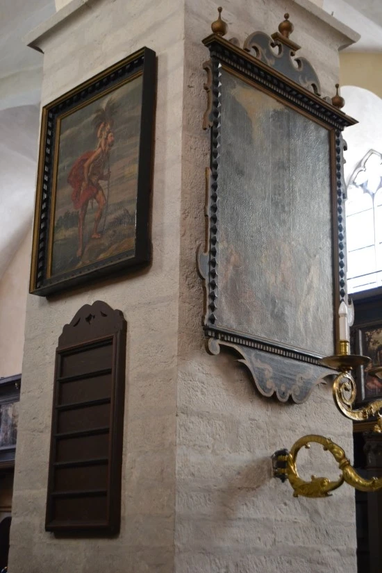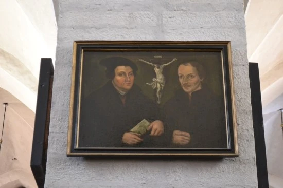 기둥에 걸린 그림 중 내 눈길이 가장 오래 머물렀던 그림인데, 그림 속의 왼쪽 인물은 종교개혁의 불씨를 댕겼던 마틴 루터(Martin Luther)를 생각나게 만든다. 하여 교회의 안내인에게 물었더니, 맞다고 한다. 그렇다면 그림 오른쪽의 인물은 루터의 종교적 동반자였던 멜란히톤(Melanchton)인가?라는 생각에 다시 물었더니, 역시 맞다고 한다. 독일의 비텐베르크(Wittenberg) 시청 앞 광장에 나란히 서있는 두 개의 동상의 주인공들이 탈린의 성령교회에서는 하나의 화폭 안에 담겨 있다. 그렇다면 이 교회는 루터파 교회라는 이야기가 되는데, 역시 그렇다고 한다(안내자에게 확인).