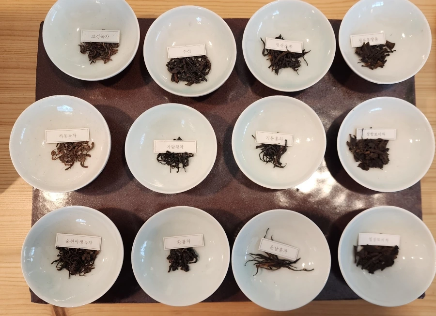 티하우스 서하는 티전문점답게 실로 다양한 종류의 차를 내는데, 이렇게 그들 찻잎을 보여주고 있다.
