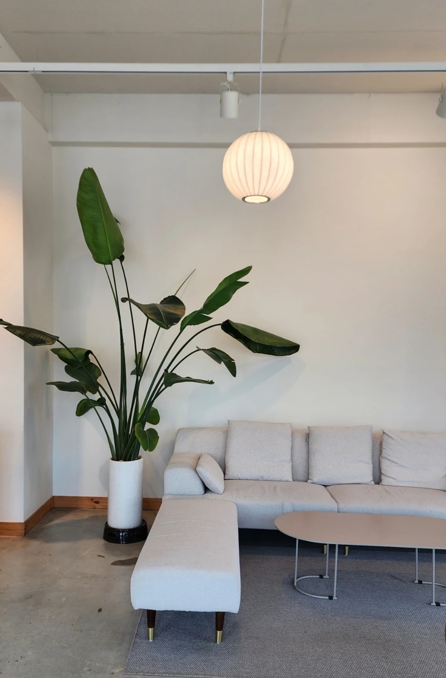 벽 쪽으로는 이런 테이블이 마련되어 있는데, 안락함이 돋보이지만 창이 없어 조금은 답답해 보인다.