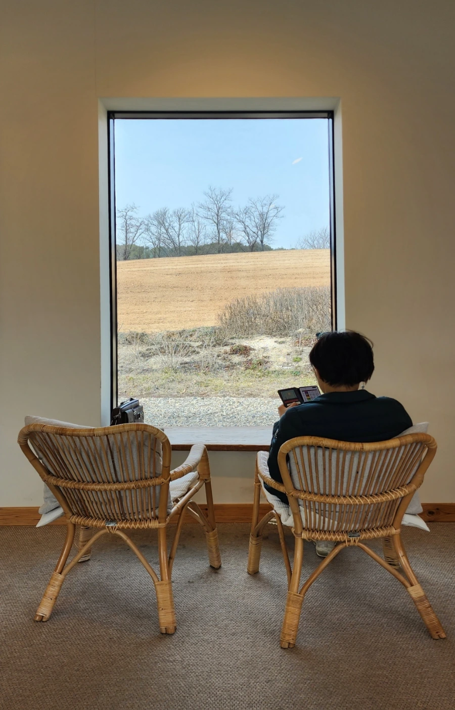 창밖의 풍경을 나란히 앉아 즐길 수 있는 공간도 있는데, 잔디가 파릇파릇 돋아나는 5월 이후에는 훨씬 더 아름다운 모습으로 다가올 것 같다.