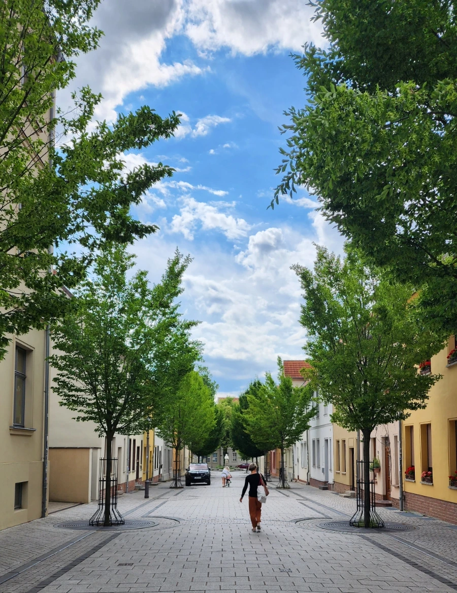 바하기념상은 성 야곱교회(St. Jakobskirche) 됫쪽으로 나있는 슐스트라세(Schulstraße, 슐거리)를 따라 조금만 걸어가면 만날 수 있다. 아래 사진이 슐스트라세의 모습인데, 이 거리의 끝에 바하기념상이 있다. 아래 사진을 자세히 들여다 보면, 저 멀리 슐스트라세가 끝나는 지점에 바하기념상이 보일 것이다.