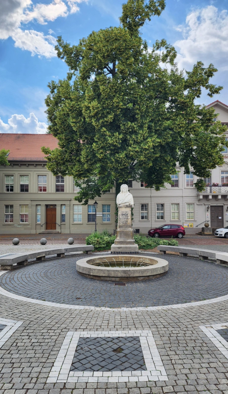 슐스트라세를 조금 더 걸어가면 자그마한 분수(?) 뒤로 하얀색 흉상이 하나 보이는데, 그것이 바로 바하기념상이다. 바하기념상이 쾨텐 성이나 시청사 부근에 있지 않고, 이 곳에 서있는 이유는 정확히 알려진 바가 없다. 그 점이 궁금해서 독일의 여러 사이트를 뒤지고 다녔지만, 독일의 경우에도 명확한 설명을 찾아보기 어려운 사정은 마찬가지이다. 그런데 얼마전에 우연히 만난 사이트에서, 그 이유를 추단해 볼 수 있는 하나의 단서를 찾을 수 있었다. 그를 기초로 추측해 보면 바하기념상 뒤쪽에 보이는 집 어딘가에서 바하가 살았던 것같은데, 그 이야기는 아래에서 다시 하도록 하겠다.