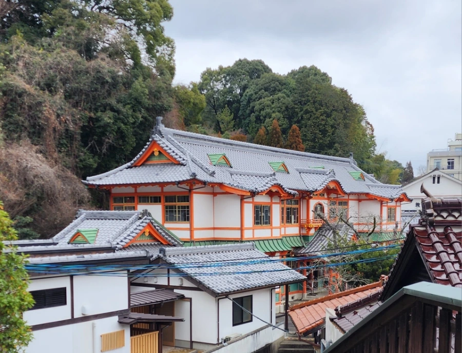 이 건물이 다케오 온천 신관(新館: 일본말론 しんかん이라고 쓰고, 신칸이라고 읽는다)이다. 다케오 온천 신칸 역시 다쓰노 긴고가 설계한 것인데 루문과 신칸의 조응이 훌륭해 보인다. 그래서 그런지 다케오 온천 루문과 신칸은 헤이세이(平成) 17년, 즉 2005년에 함께 국가 중요문화재 건물로 지정을 받아 보존되고 있다.