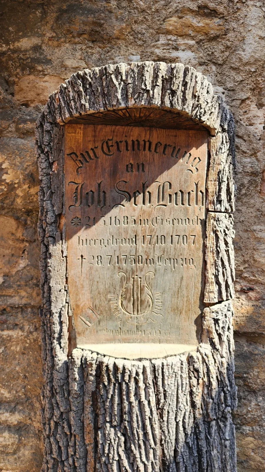또한 이 벽에는 "바흐를 기억하며"라는 글 밑으로 바흐의 일생을 간략하게 요약해 놓은 글도 써 놓았다: "바흐는 1685년 3월 21일에 아이제나흐(Eisenach)에서 태어나고, 1707년 10월 17일에 이곳에서 결혼하였으며, 1750년 7월 28일에 라이프치히(Leipzig)에서 사망했다".
