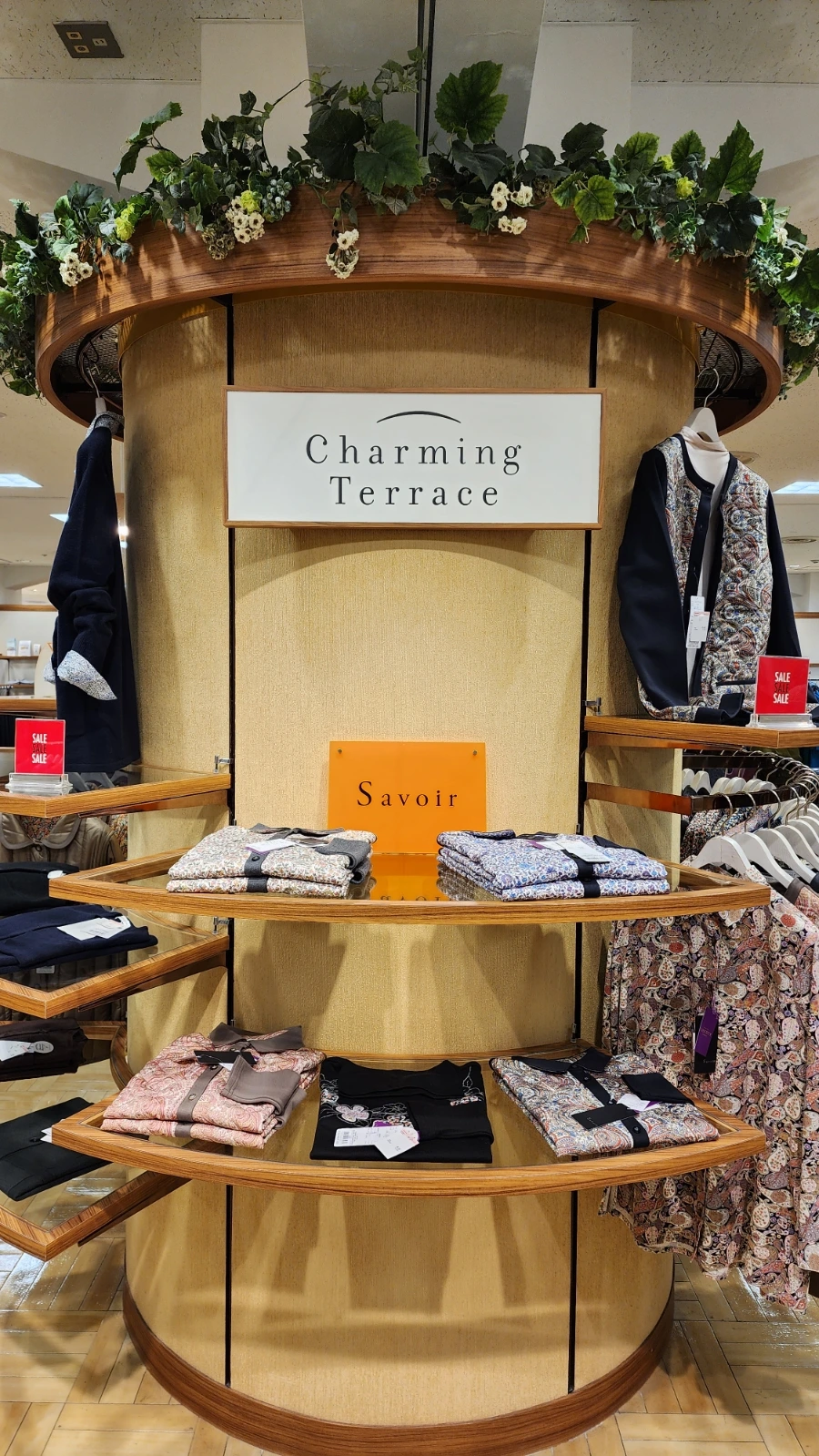 또한 통상적으로 백화점에서 제일 화려하기 마련인 여성복 매장의 경우도 화려함과는 거리가 멀고, 그리 고급스럽지도 못하다. 다만 우리가 잘 알고 있는 유명 브랜드보다는 일본 자체 브랜드들이 많이 입점해 있는 것은 특징적이다. 이는 어쩌면 자국 브랜드에 대한 자부심에서 나오는 것일 수도 있는데, 그 점에 관한 한 이들의 방식을 참고할 필요가 있다고 생각한다. 일본의 자국 브랜드 중 내가 눈여겨보았던 것은 "Charming Terrace"라는 브랜드의 매장인데,