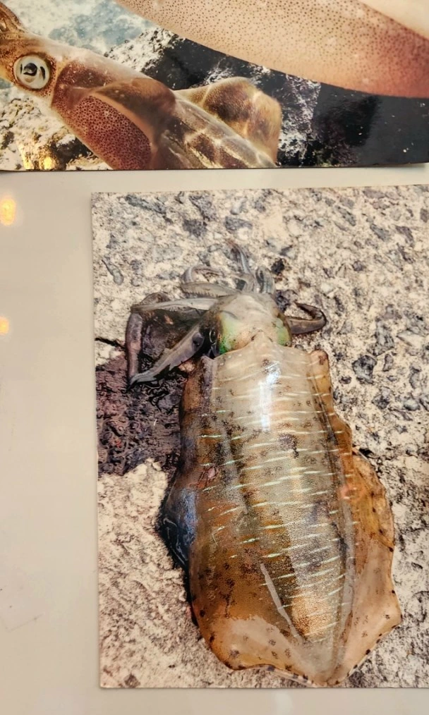무늬오징어는 사진으로 보면 이런 모습을 하고 있는데, 이렇게 보면 갑오징어와 비슷해 보이는 면이 있다.