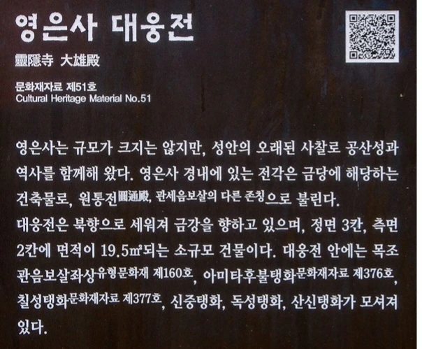 영은사에 관하여는 아래 사진을 참조하기를...