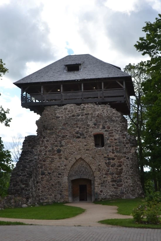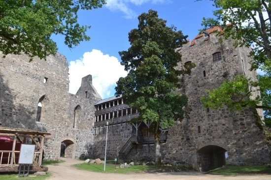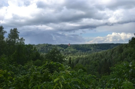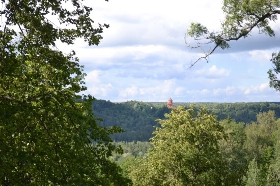 중세 시굴다성 안에서 가우야 국립공원의 숲을 볼 수 있는데, 사진 중앙 저 머얼리 보이는 붉은색의 건물은 투라이다성이다.