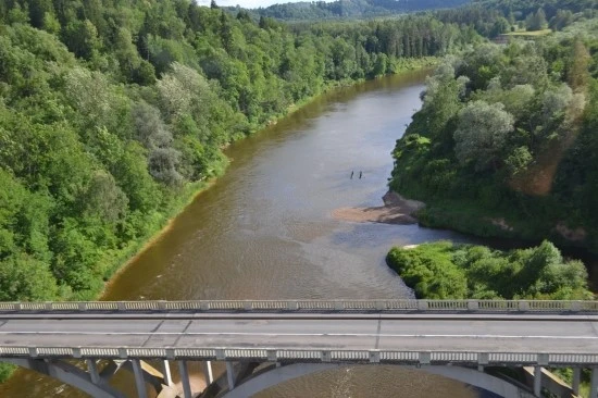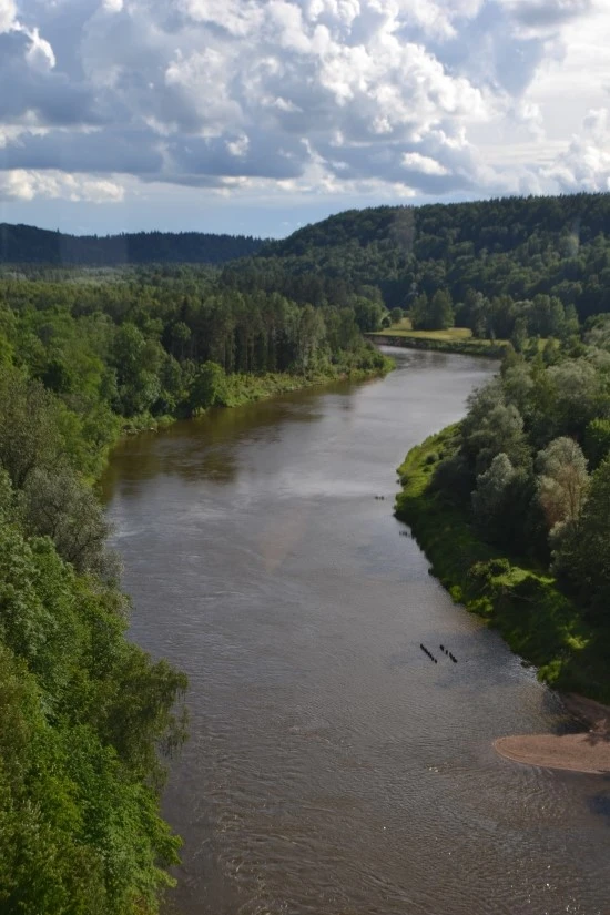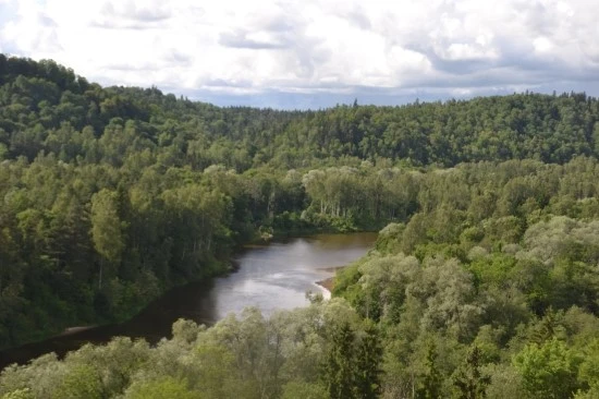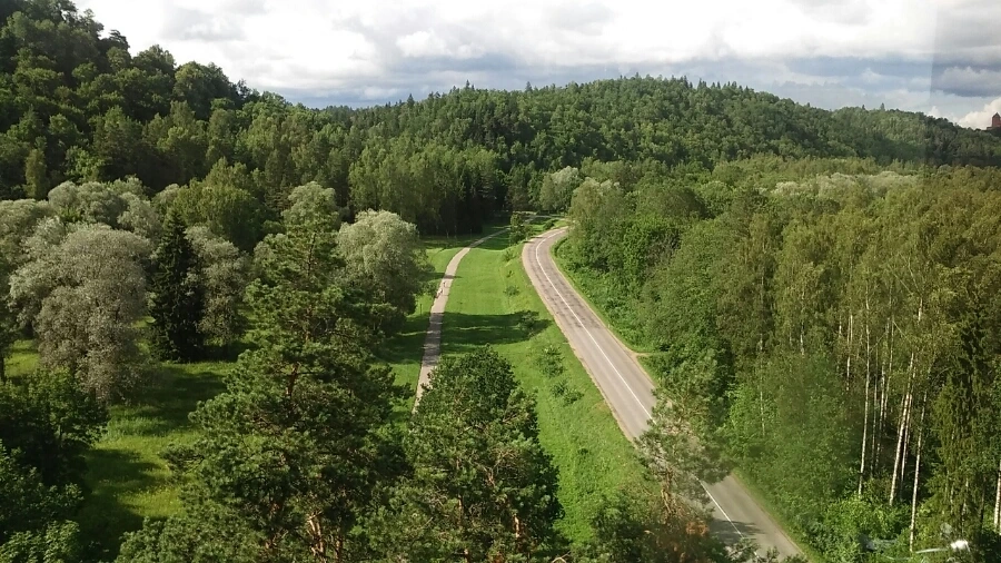 이런 생각으로 케이블카를 타보았다. 과연... 케이블카를 타보니 시굴다를 몇 시간씩이나 차를 몰고 다니면서도 그곳의 존재조차 예측할 수 없었던 가우야(Gauja)강이 비로소 자신의 모습을 온전히 보여준다. 아래 사진처럼 강 옆으로 나무가 빽빽이 들어차 있으니, 가우야강의 모습은 케이블카를 타고 하늘에서 바라보는 것 이외에는 사실 감상이 불가능하다.