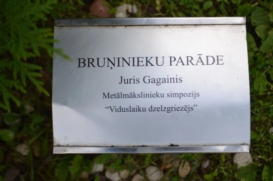 주변을 기웃거려 보니 나무밑에 이런 것이 숨겨져 있다. 음, 이에 따르면 위의 작품은 Juris gagains라는 사람의 작품이고, 작품명은 "~ 퍼레이드"라는 이야기인 듯하다. 그 밑에 보이는 작은 글씨는 이 작품에 대한 해설 같은데, metal 그리고 symphony쯤에 해당하는 단어로 생각되는 단어가 보인다.