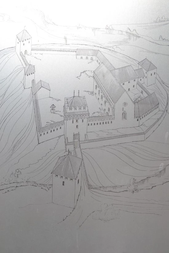 중세 시굴다성 입구에 예전의 모습이 그려져 있는데, - 투라이다성이 지금 복원되어 있는 것을 통해 예전의 모습이 어떠했는지를 그려볼 수 있는 것과 달리 - 현재의 모습만으로는 도저히 아래 그림 속 모습을 그려볼 수가 없다.