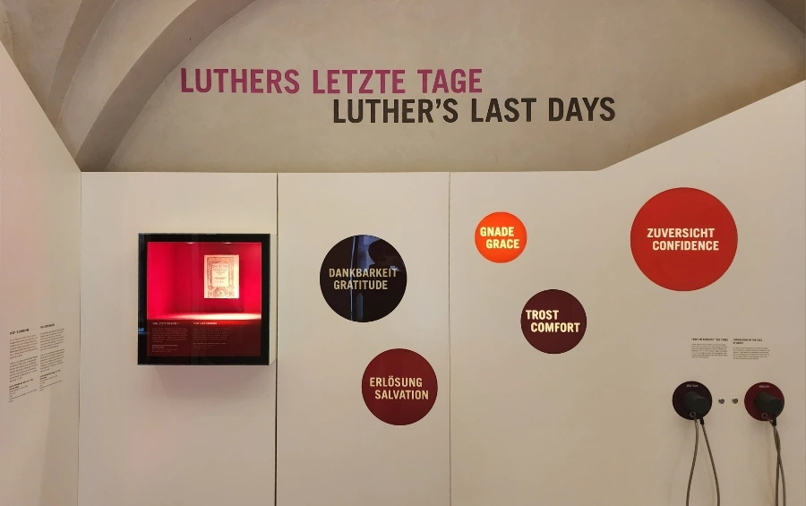 박물관은 루터의 죽음에 이르는 과정을 다음과 같은 순서로 전시하여 보는 이로 하여금 긴장감을 가지고 조금씩 몰입하게끔 만드는 전시방법을 택하고 있는데, 괜찮은 방법이란 생각이 든다. 먼저 '루터의 마지막 여행'이란 제목 아래 1546년 1월 23일에 비텐베르크(Wittenberg)를 떠난 루터가 어떤 도시들을 거쳐 아이스레벤에 이르게 되는지를 보여준 다음에,