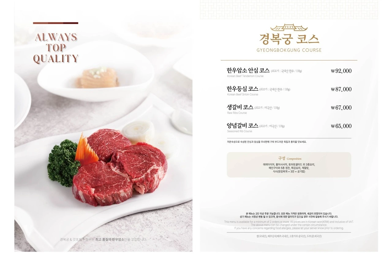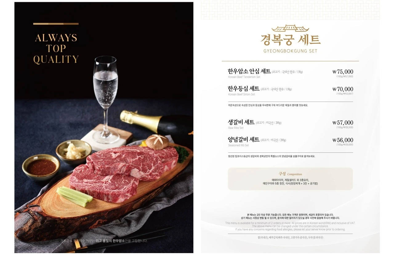 메뉴... 일단 세트메뉴부터 보면, 경복궁세트는 이렇게 라인업이 이루어져 있다.