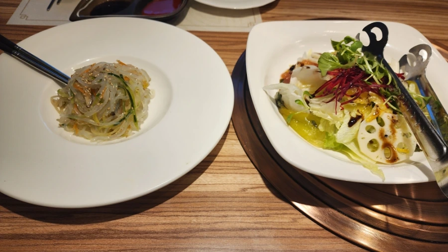 그리고 샐러드와 청포묵무침이 나오는데, 둘 모두 괜찮다. 특히 간이 너무 강하지 않은 것이 마음에 든다.