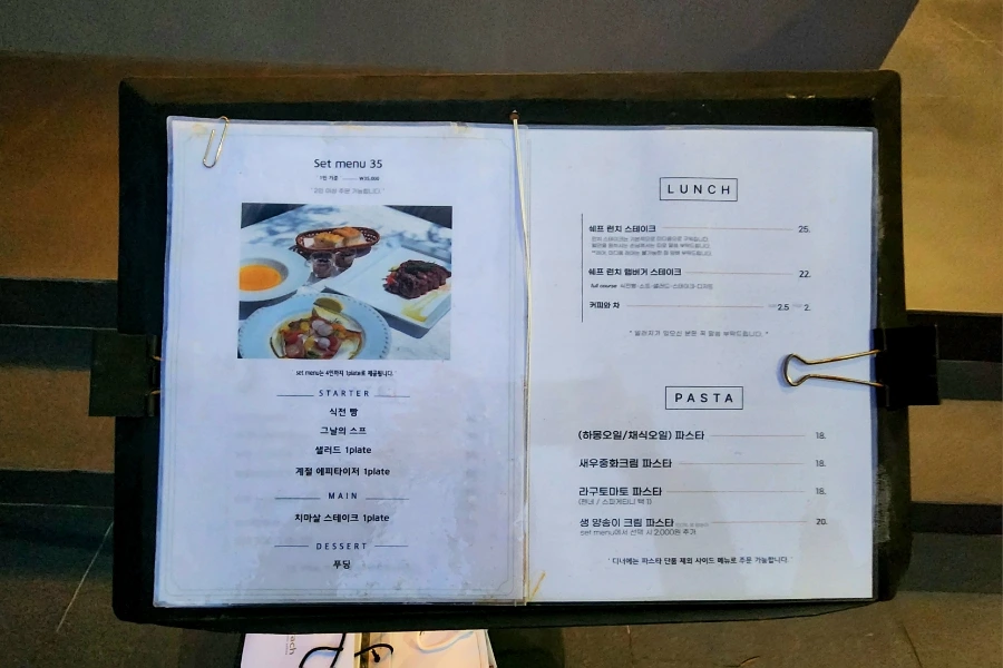 자, 이제부터는 음식 이야기를 해보기로 하겠다. "송쿠쉐는 세트 메뉴가 알차다"는 이야기를 들은 바 있어서 오늘의 식사는 세트 메뉴로 하기로 마음먹었다. 점심이라면 쉐프런치 스테이크를 고려할 수 있었겠지만,