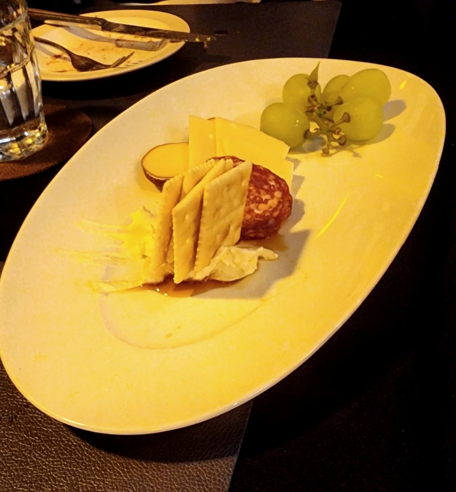 식사를 마치고 술 한잔을 곁들이며 이야기꽃을 피우고 있을 때, 술안주로 최고인 것들의 조합으로 이루어진 셰프의 특별 서비스메뉴가 테이블 위에 올라왔다. 치즈와 크래커, 살라미와 과일 등이 어우러져 따로 메뉴로 개발하여 판매해도 선호도가 무척이나 높을 것 같은 ...
