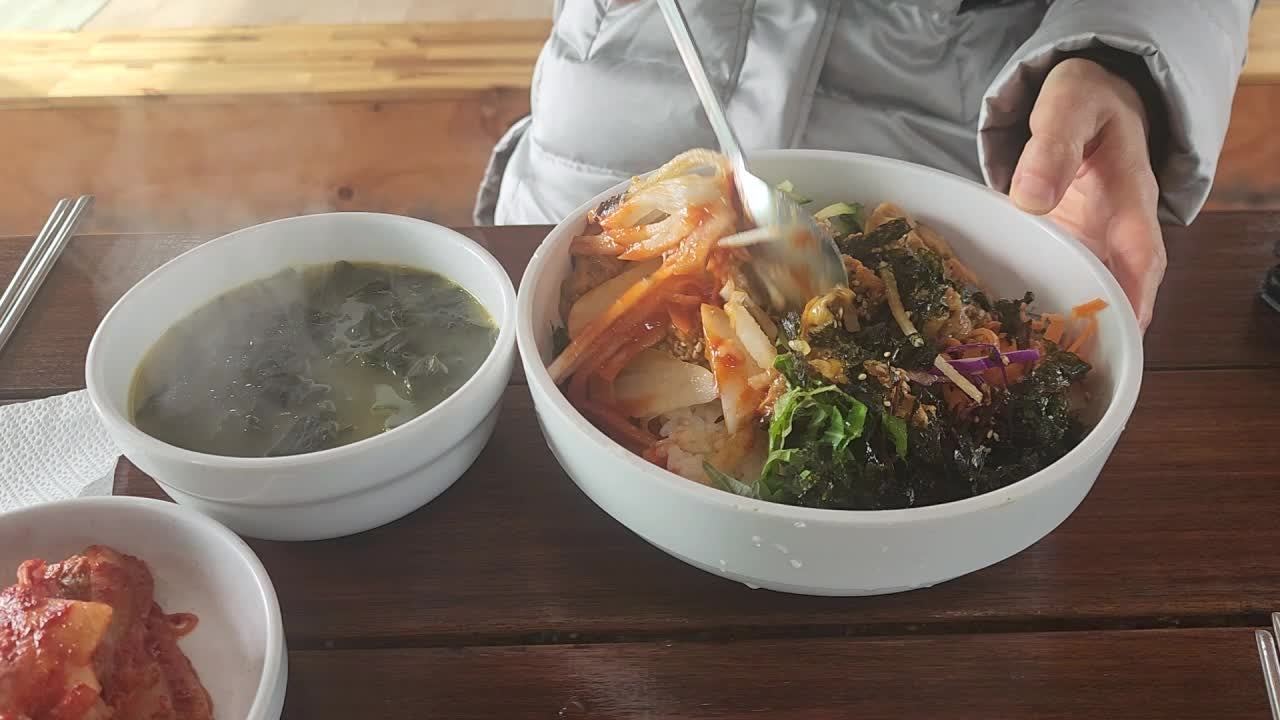 성게ㆍ멍게비빔밥의 맛을 제대로 즐기기 위한 Tip... 성게ㆍ멍게비빔밥은 이렇게 꾹꾹 눌러가며 오래 비벼대야 제맛이 납니다.