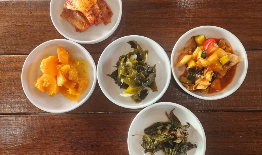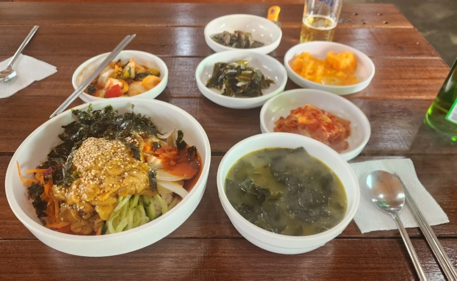 기본찬과 성게ㆍ멍게비빔밥을 한 장의 사진에 담아 보았는데, 사진만으로도 푸짐함이 느껴진다.