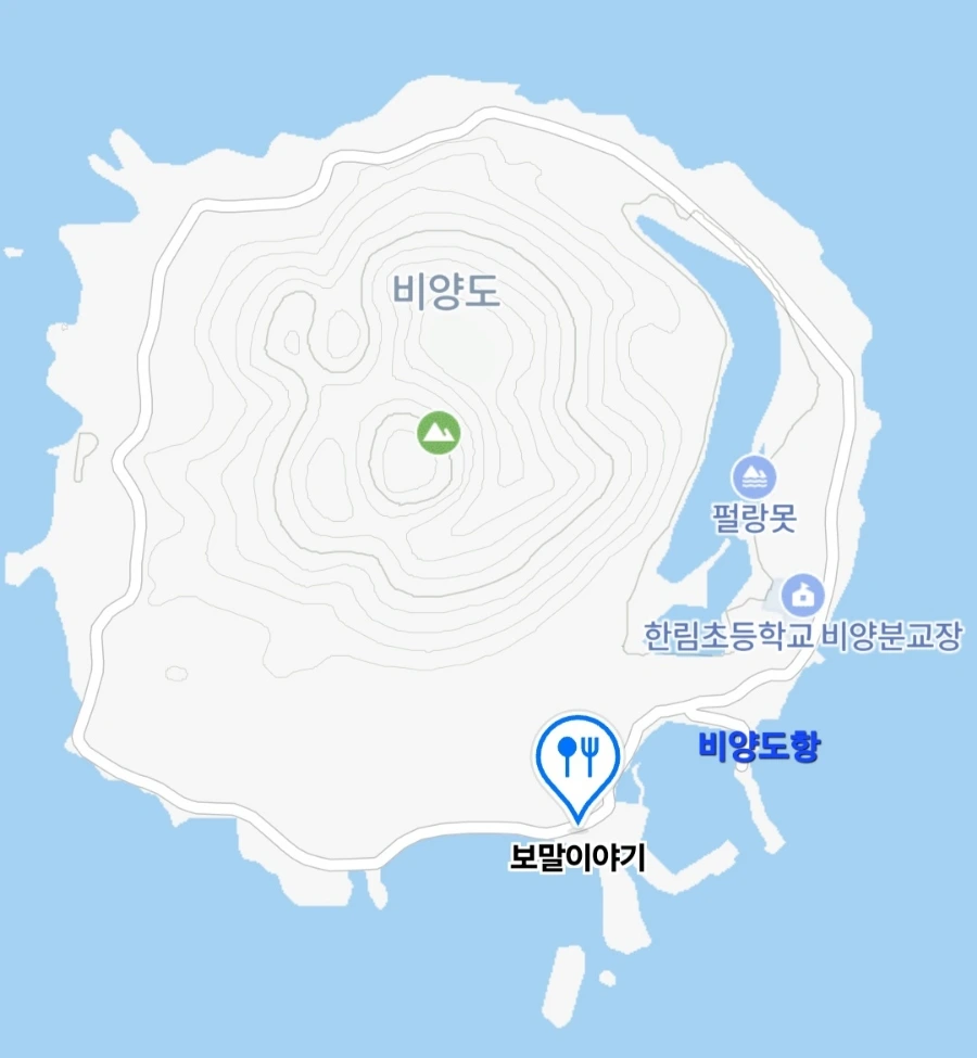 보말이야기는 아래 지도에서 보듯이 비양도항에서 서쪽으로 조금 떨어진 곳에 있는데, 그런 면에서 비양도항에 내렸을 때 바로 보이는 다른 음식점들에 비해 지리적으로는 열악한 위치에 있다고 할 수 있다.