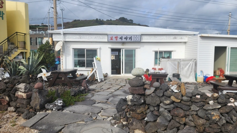 돌담 너머에서 바라본 보말이야기의 모습.