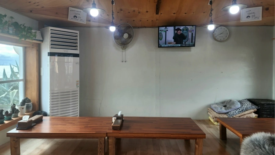문을 열고 들어서면 이러한 모습이 보인다. 그리고 뒤쪽으로 난 문을 나가면 비양도 앞바다와 마주치게 된다.