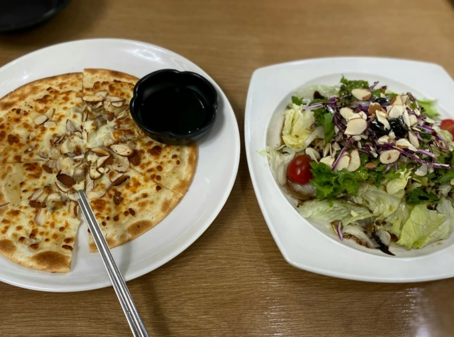 (내가 주문하지는 않았지만) 쭈꾸미 세트 메뉴를 주문하면 함게 서비스되는 고르곤졸라피자와 샐러드파스타인데, 사진만 봐서는 괜찮아 보인다.