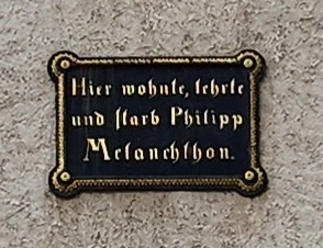 우리식으로 말하면 2층과 3층 사이에 "이곳에서 멜란히톤이 살았고, 학생들을 가르쳤으며, 죽었다"라고 쓰여 있다.