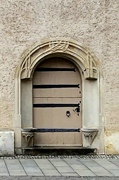 이 출입문(현관)현관은 인근 피르나(Pirna) 지방의 사암(沙岩)으로 만들어졌는데, 사진 속에 보이는 이같은 현관 형식은 당시 상류층 집 현관의 전형적 모습이었다고 한다.