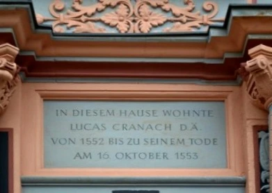 크라나하가 사망한 집의 정면 집으로 들어가는 입구 위에 "이 집에서 루카스 크라나하(Lucas Kranach)가 1552년부터 1553년 10월 16일에 죽음을 맞이할 때까지 살았다"라고 쓰여 있다.