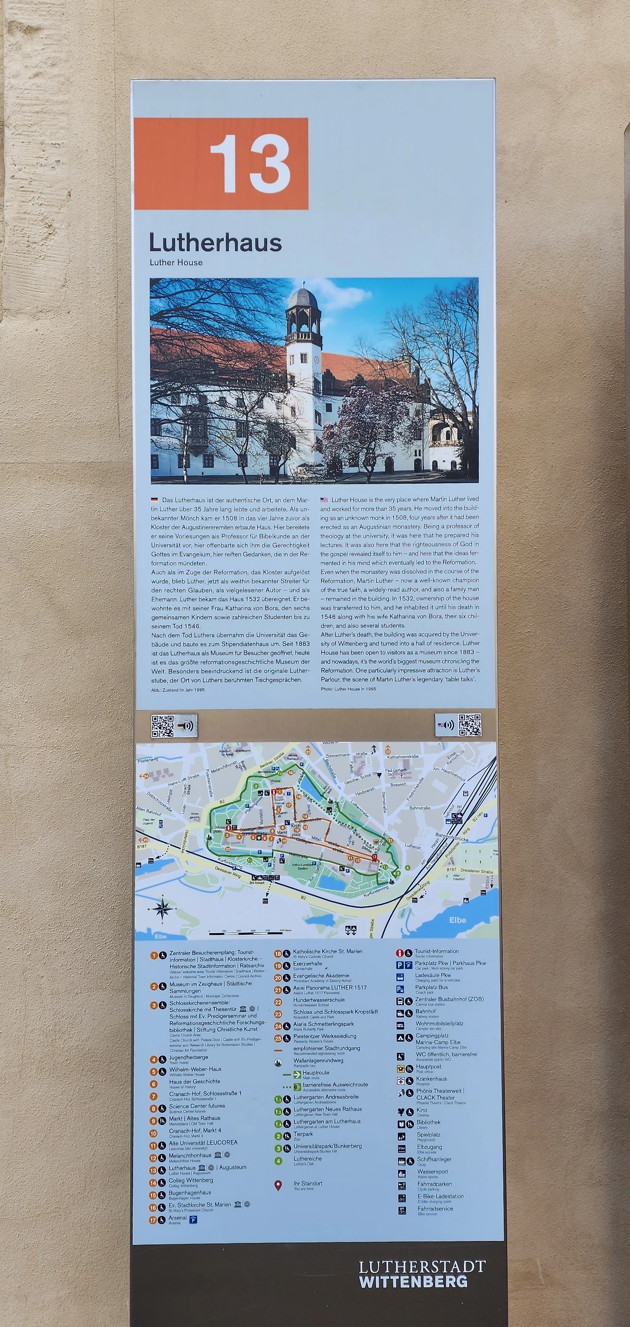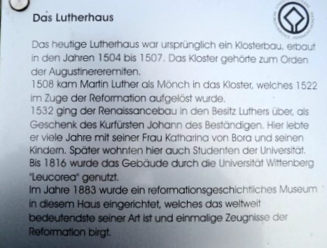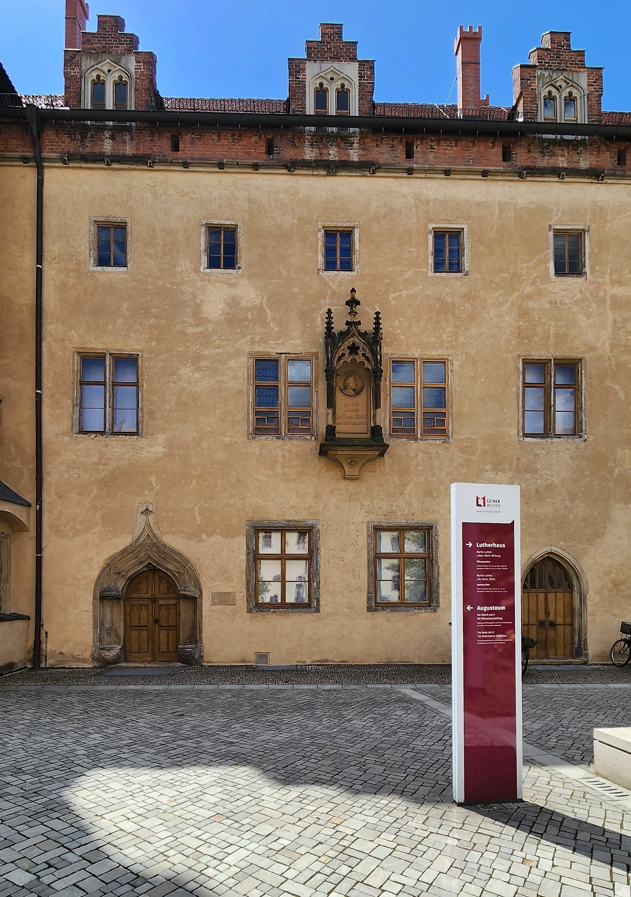 루터의 집을 둘러싸고 있는 외벽에 두 개의 안내판이 나란히 붙어 있다. 하나는 지금부터 우리가 볼 루터의 집안내판이고, 다른 하나는 아우구스테움(Augusteum) 안내판이다. 아, 아우구스테움은 옛 아우구스티노 수도원 자리에 세워진 루터기념관을 말하는데, 이 수도원 건물은 처음에는 대학건물로 쓰이다가 18세기부터 루터교 신학교건물로 쓰였었다.
