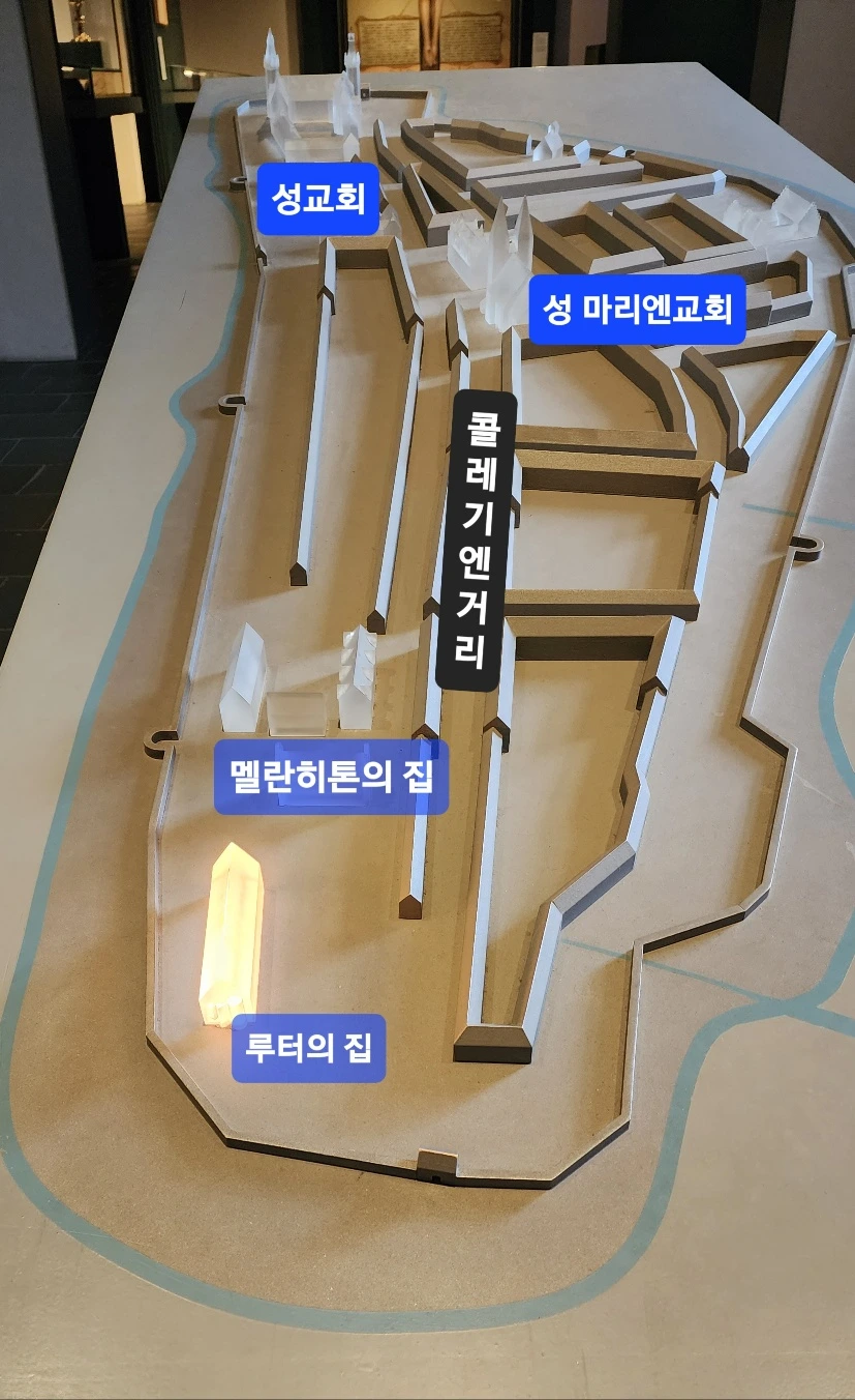 매표소를 지나 전시실로 들어가기 전의 공간에 루터의 집의 입체모형이 전시되어 있는데, 루터의 집은 보다시피 4층짜리 건물이다.